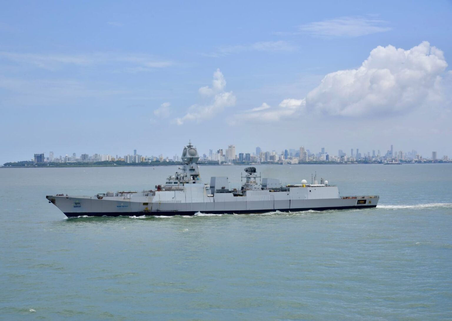 સુરત: ભારતીય નૌકાદળનું આધુનિક યુદ્ધજહાજ ‘INS સુરત’ ચોર્યાસી તાલુકાના હજીરાના દરિયાકાંઠે અદાણી પોર્ટ પર આવી પહોંચ્યું હતું.