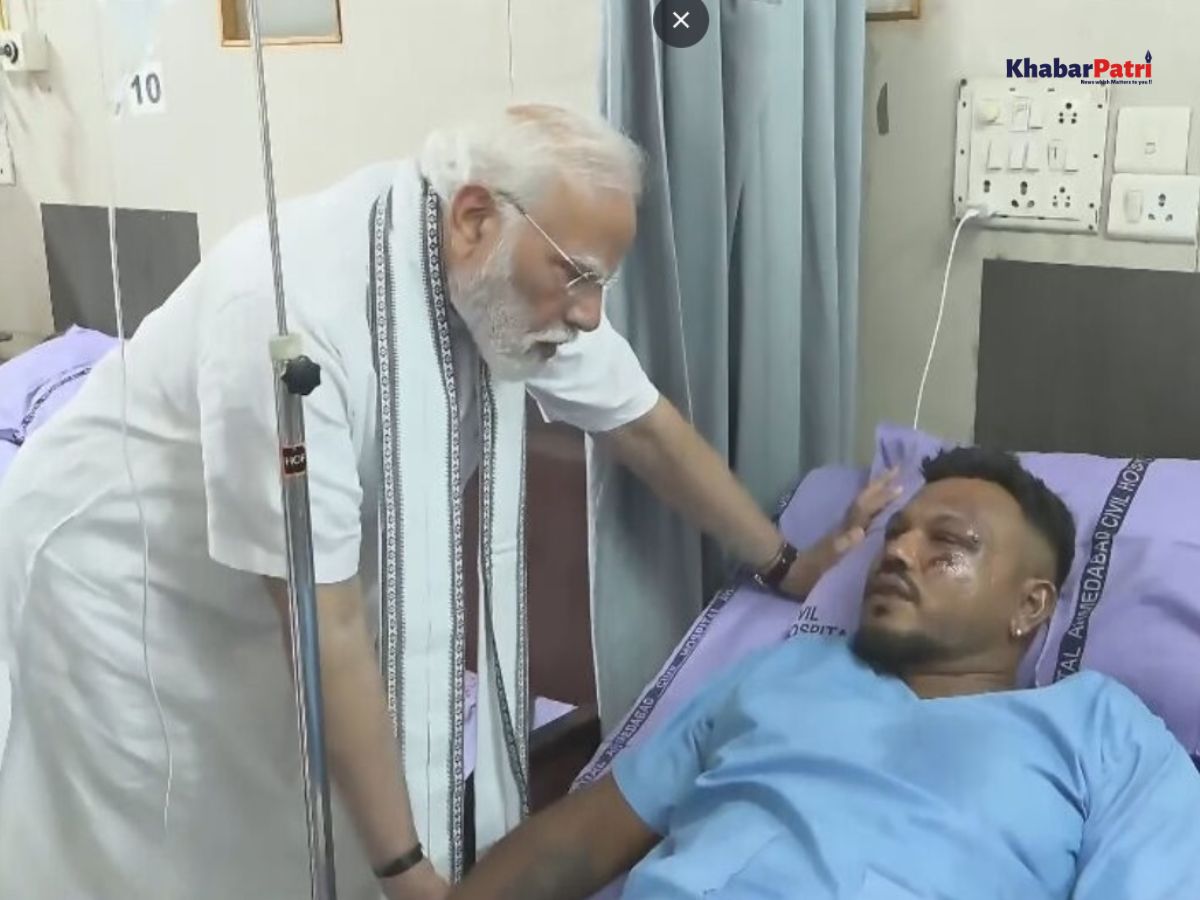 અમદાવાદમાં સર્જાયેલી ભયંકર વિમાન દુર્ઘટનાએ દેશ જ નહીં વિદેશના લોકોને પણ હચમચાવી નાખ્યાં છે. સ્પીડમાં ટેકઓફ કરતી વખતે વિમાન સીધું એક હોસ્પિટલની હોસ્ટેલની બિલ્ડિંગમાં ઘૂસી ગયું હતુ. ભારે વિસ્ફોટ, આગ, ધૂમાડો અને મોતની ચીચયારીઓ વચ્ચે દરેક લોકો આઘાતમાં આવી ગયા હતા. આ દુર્ઘટનામાં 265 લોકોના મોત થઈ ગયા. જ્યારે ચમત્કારિક રીતે બચી ગયેલા રમેશ વિશ્વાસ કુમાર સાથે આજે વડાપ્રધાન નરેન્દ્ર મોદીએ મુલાકાત કરી અને તેના ખબર અંતર પૂછ્યાં હતા.