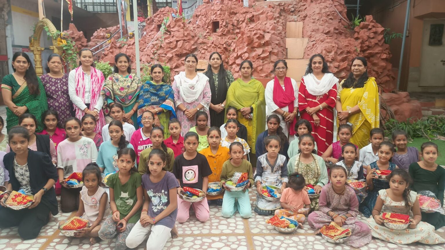 નવરંગપુરા ગામ સ્થિત અંબાજી માતાના મંદિરમાં ગૌરીવ્રત કરતી છોકરીઓનું મહિલા મોરચાની બહેનો દ્વારા પૂજન કરાયું