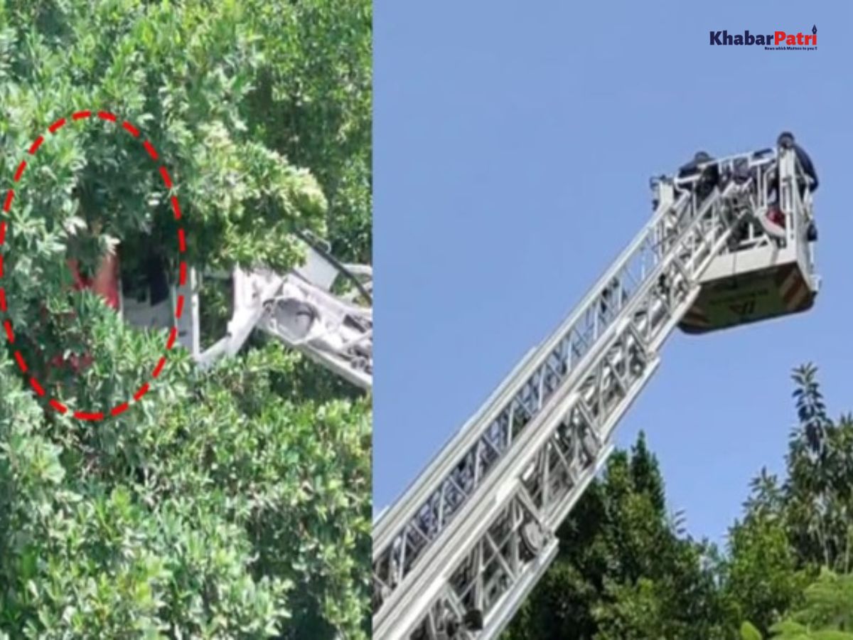 આ મહિલા ક્યાં કારણસર ઝાડ પર ચઢી હતી તે કોઈને પણ ખબર ન હતી અને આ દ્રશ્ય જાેઇને તાત્કાલિક ફાયર બ્રિગેડ અને પોલીસને જાણ કરવામાં આવી હતી.