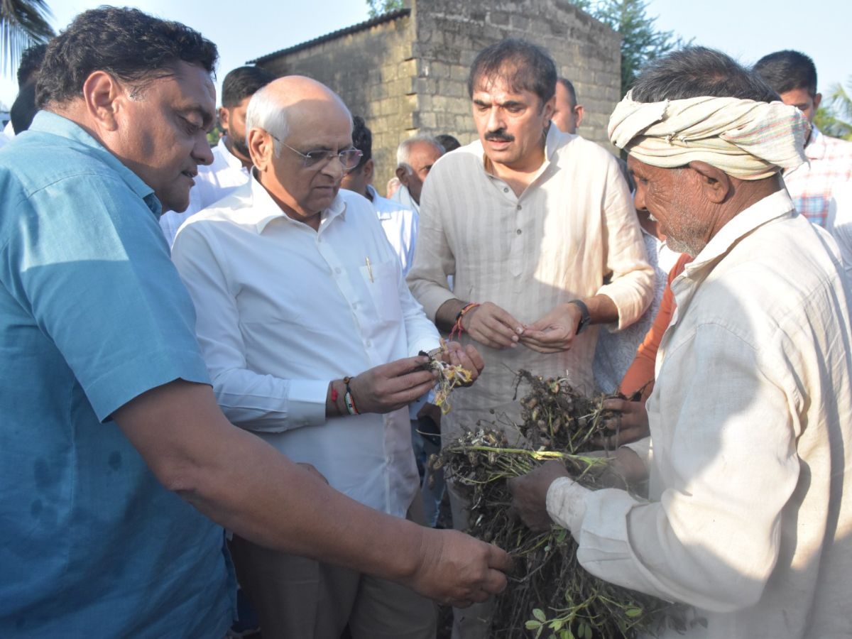 મુખ્યમંત્રી સ્વંય ગીર-સોમનાથ જિલ્લાના કડવાસણ અને જુનાગઢ જિલ્લાના પાણીદ્રા ગામે સોમવારે બપોર બાદ પહોંચ્યા હતા અને ખેડૂતોના ખેતરોમાં ઊભા પાકને થયેલા નુકસાનનો ક્યાસ સ્થળ સ્થિતિ નિરીક્ષણ દ્વારા તેમણે મેળવ્યો હતો અને ખેડૂતોની આપવીતી સહાનુભૂતિપૂર્વક સાંભળી હતી.