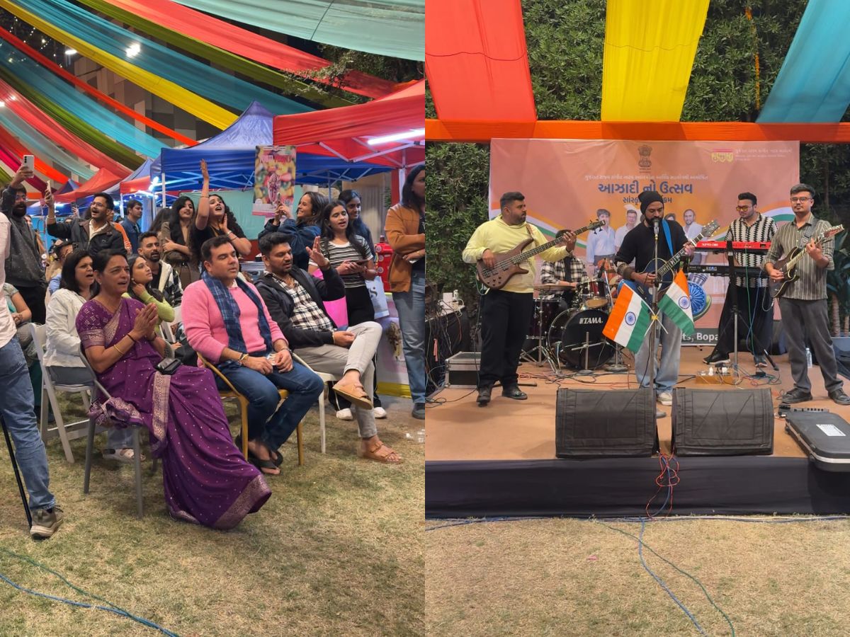 અમદાવાદ: 26 જાન્યુઆરીના પ્રજાસત્તાક પર્વની પૂર્વ સંધ્યાએ “આઝાદીનો ઉત્સવ” અંતર્ગત ગુજરાતના લોકપ્રિય એહસાસ બેન્ડ દ્વારા ભવ્ય સાંસ્કૃતિક કાર્યક્રમનું આયોજન અમદાવાદના બોપલ વિસ્તારમાં સ્થિત જાણીતા ટ્વિસ્ટેડ રૂટ્સ ખાતે કરવામાં આવ્યું હતું. આ કાર્યક્રમ ગુજરાત રાજ્ય સંગીત નાટક અકાદમીના સહયોગથી યોજાયો હતો.