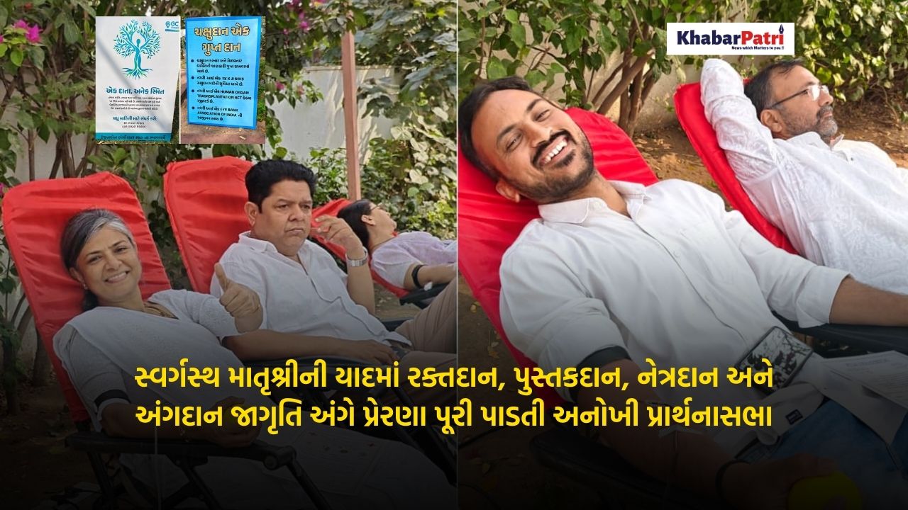 સ્વર્ગસ્થ માતૃશ્રીની યાદમાં રક્તદાન, પુસ્તકદાન, નેત્રદાન અને અંગદાન જાગૃતિ અંગે પ્રેરણા પૂરી પાડતી અનોખી પ્રાર્થનાસભા